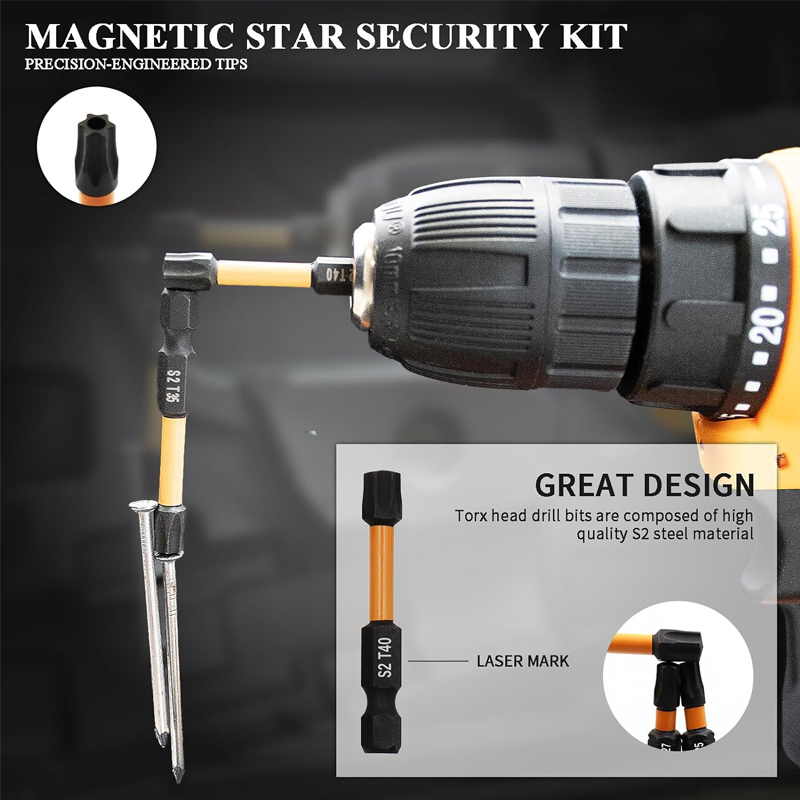 [S2 Alloy Steel Material] This torx bit set is made of high quality S2 alloy steel material, which has a solid quenched and tempered structure.
