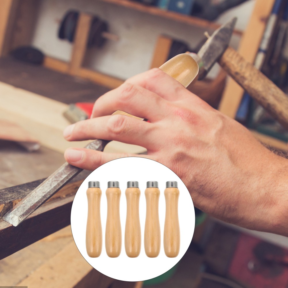 5pcs Wooden File Handle with Strong Metal Collars for Metal File Wood