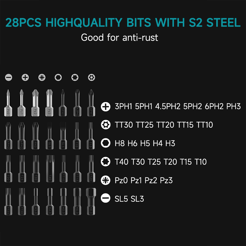 【Secure and Organized Storage】 This sets are kept in magnetic storage case. This keeps them secure and clean and means that they are clearly arranged for easy tool selection. Each part has a snug-fitting storage slot in the carrying case making portability and accessibility a cinch. Compact and lightweight design.